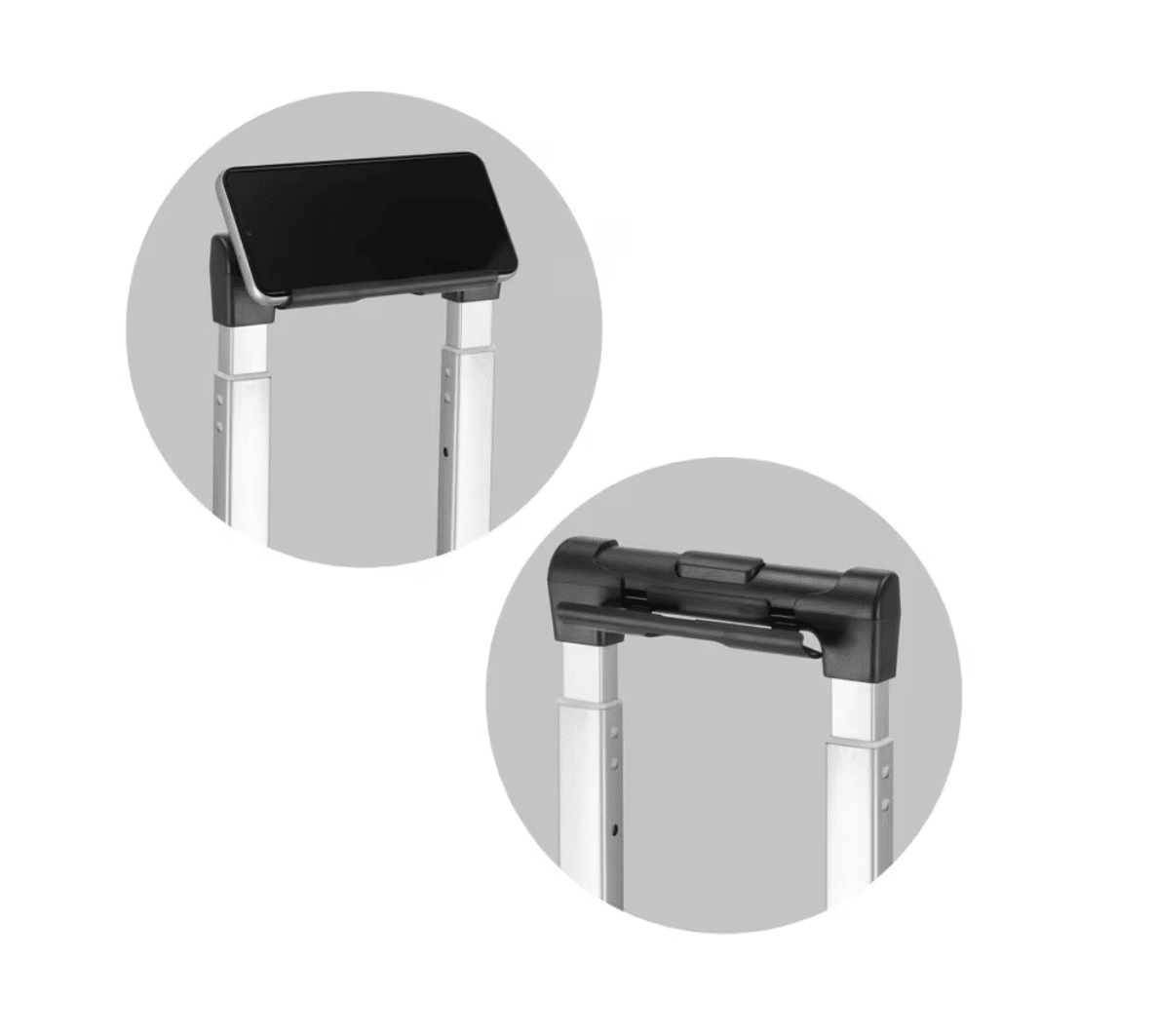 Deze cabin trolley maakt reizen comfortabel. Voorzien van vier zwenkwielen, een TSA-cijferslot, een telefoonhouder in het handvat, een geïntegreerde bekerhouder aan de achterzijde en twee haken aan de zijkant om bijvoorbeeld een tasje of nekkussen aan op te hangen. Binnenin het voorvak bevindt zich een gevoerd laptopvak voor laptops tot 15,6 inch.