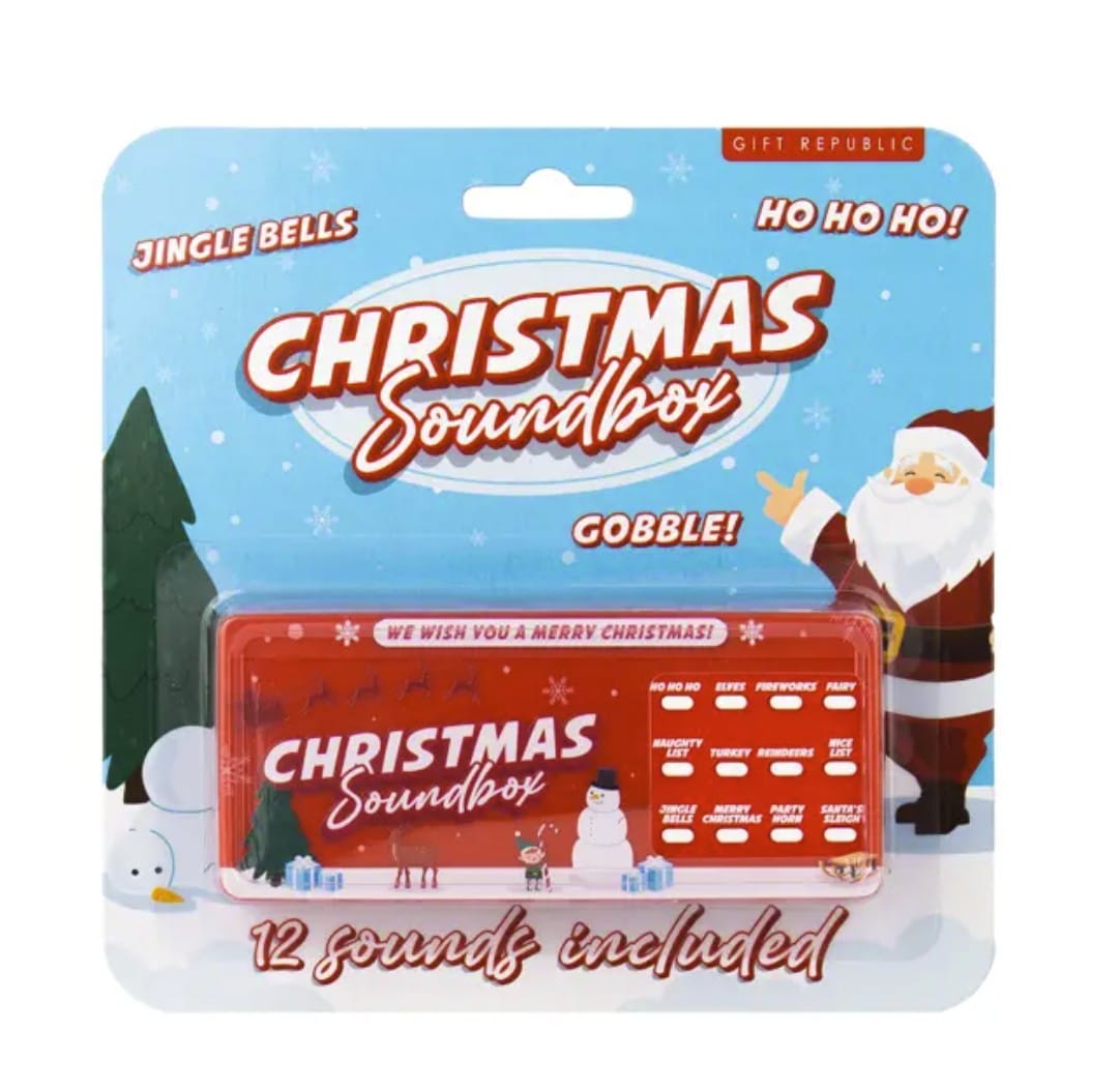 Met één druk op de knop tover je direct een echte kerstsfeer tevoorschijn met de Christmas Soundbox van Gift Republic. Deze soundbox zit boordevol feestelijke geluiden, maar liefst 12 verschillende, van het klassieke “Ho Ho Ho” tot rinkelende bellen. Een onmisbare must-have voor de feestdagen die iedere kerst meteen extra gezellig maakt!