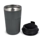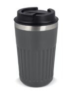 Gerecyclede RVS koffiebeker 40ml voor onderweg. De deksel is lekvrij. De beker heeft een modern strepenpatroon en deze koffie to go beker kan full color rondom bedrukt wroden. De koffiebeker is per stuk verpakt in een geschenkdoos.