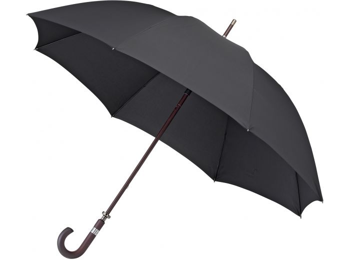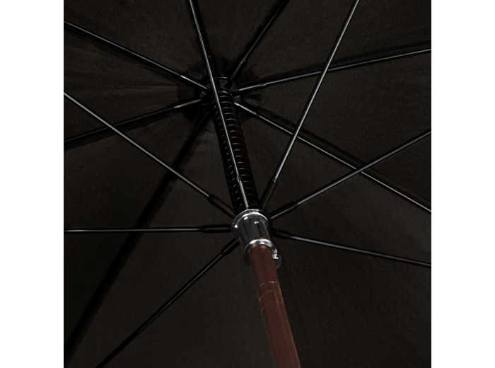 De FALCONE® grote paraplu Ø 130 cm is een klassieke en stevige golfparaplu met handopening. Dankzij de windproof constructie en de zwarte glasfiber baleinen biedt deze paraplu uitstekende bescherming tegen regen en wind. De 16 mm houten stok met bijpassende houten haak geeft de paraplu een tijdloze, luxe uitstraling en ligt prettig in de hand. Een betrouwbare keuze voor dagelijks gebruik.