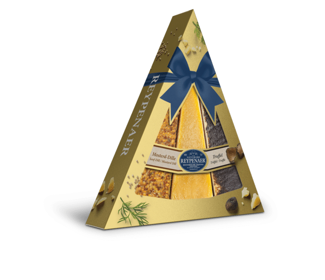 De Reypenaer Kaas wordt geproduceerd door een kleine kaasmakerij op traditionele wijze. We hebben 3 kazen in ons assortiment; Reypenaer Kaas 1 jaar die perfect is als aperitief met een heerlijk glaasje Port. Reypenaer V.S.O.P. is een 2 jaar gerijpte kaas die smelt op de tong die lekker is als dessert of in de avond met vrienden. En we hebben de Reypenaer X.O. Reserve; Deze kaas wordt 2,5 jaar gerijpt en is een bijzondere kaas die heerlijk op het balkon is, bij het open vuur of binnen bij de open haard. Leverbaar in een kaaspunt van 300 gram of in een bewaarzak van 430 gram.