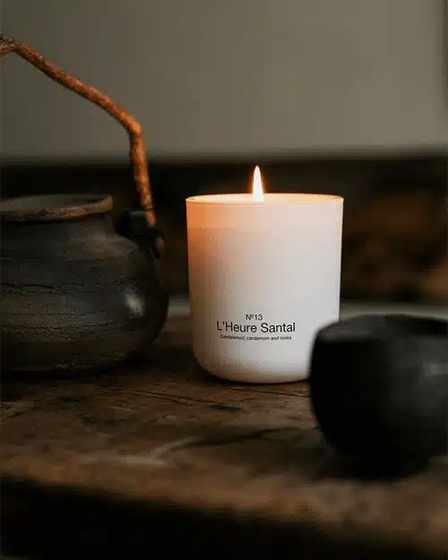 Ervaar de luxe van Geurkaars No.13 L’Heure Santal. Deze 300 gr limited edition kaars verspreidt een subtiel houtachtig en kruidig aroma van sandelhout, kardemom en tonkaboon. Brand tot 60 uur en geniet van een navulbaar, tijdloos glazen ontwerp, gemaakt van 100% natuurlijke, vegan was en CO2-neutraal geproduceerd.