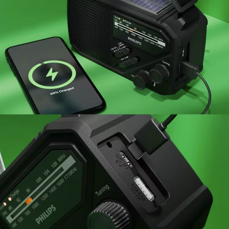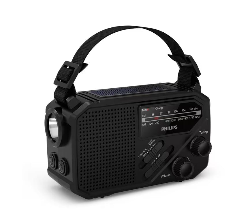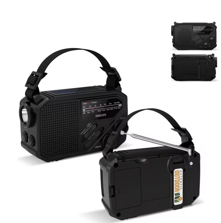De Philips TAR1609 noodradio combineert functionaliteit en zekerheid in één compact ontwerp. Met FM/AM-ontvangst, ingebouwde zaklamp, SOS-alarm en oplaadmogelijkheden via zonne-energie, USB of handslinger, ben je altijd voorbereid – thuis, onderweg of tijdens het kamperen.