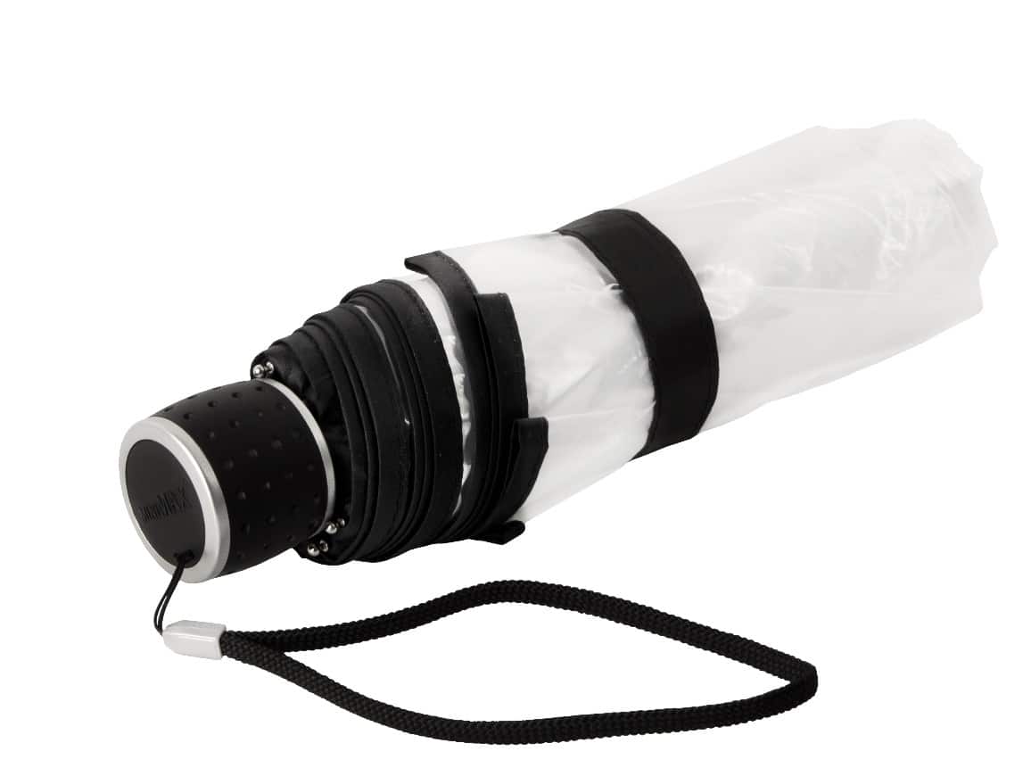 De MINIMAX® transparante opvouwbare paraplu combineert zichtbaarheid met stevigheid. Dankzij het windproof ontwerp, de 3-delige metalen stok en de zwarte glasfiber baleinen biedt deze paraplu betrouwbare bescherming bij regen en wind. Het transparante doek zorgt voor goed zicht, terwijl het zwarte kunststof handvat comfortabel in de hand ligt. Compact op te vouwen en ideaal voor dagelijks gebruik.