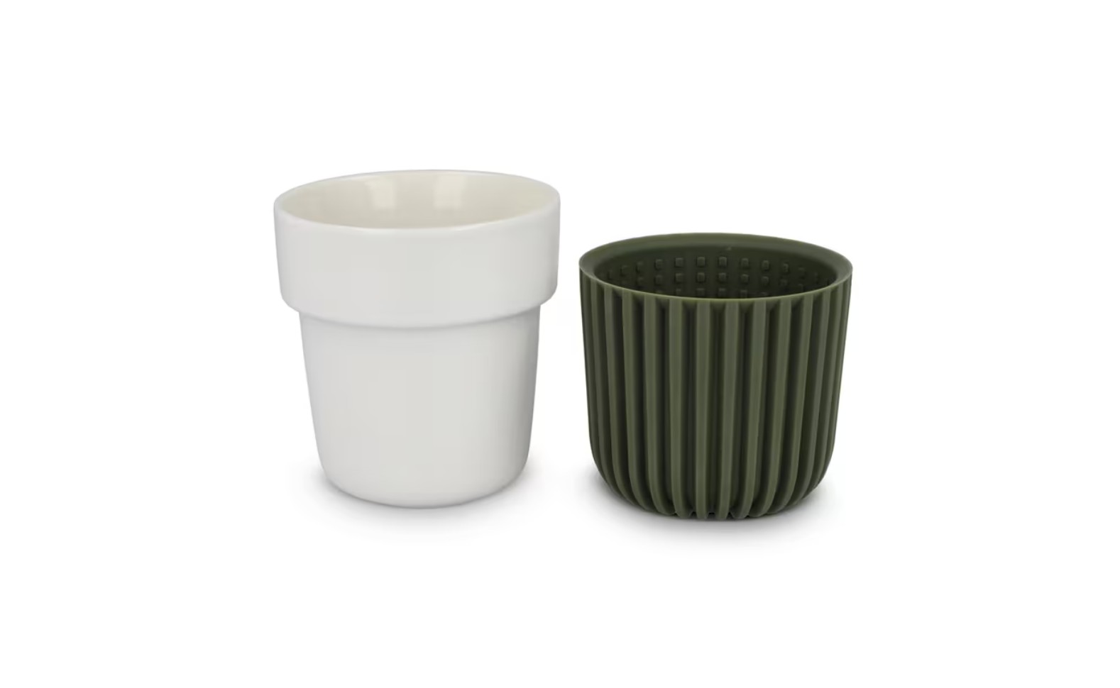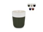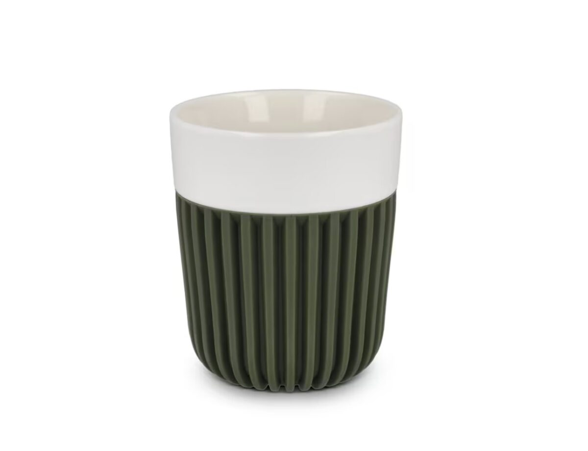 De premium mok is gemaakt van New Bone China en heeft een exclusieve geribbelde siliconen sleeve die isoleert en beschermt. Ontworpen door designer Andy Cartwright, straalt de mooi vormgegeven mok elegantie en luxe uit. Het formaat van de mok past onder de meeste koffiezetapparaten, is vaatwasbestendig en daarom ideaal voor dagelijks gebruik. De mok is mooi en duurzaam te bewerken doormiddel van een lasergravure.