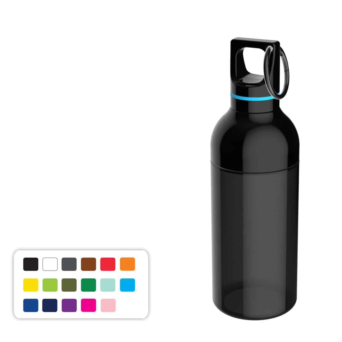 De fles is 100% lekvrij en voorzien van een stevige, gepatenteerde karabijnhaak die niet rammelt. Verkrijgbaar in diverse kleuren en met een siliconenring in 18 varianten. Daarnaast biedt hij uitgebreide personalisatiemogelijkheden met lasergravure, tampondruk en UV-bedrukking (180° of 360°).