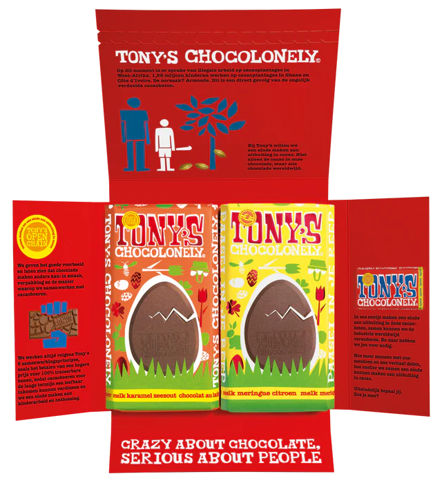 Een herkenbaar, verantwoord chocoladecadeau dat perfect past bij de paasdagen en eenvoudig op de deurmat wordt bezorgd.