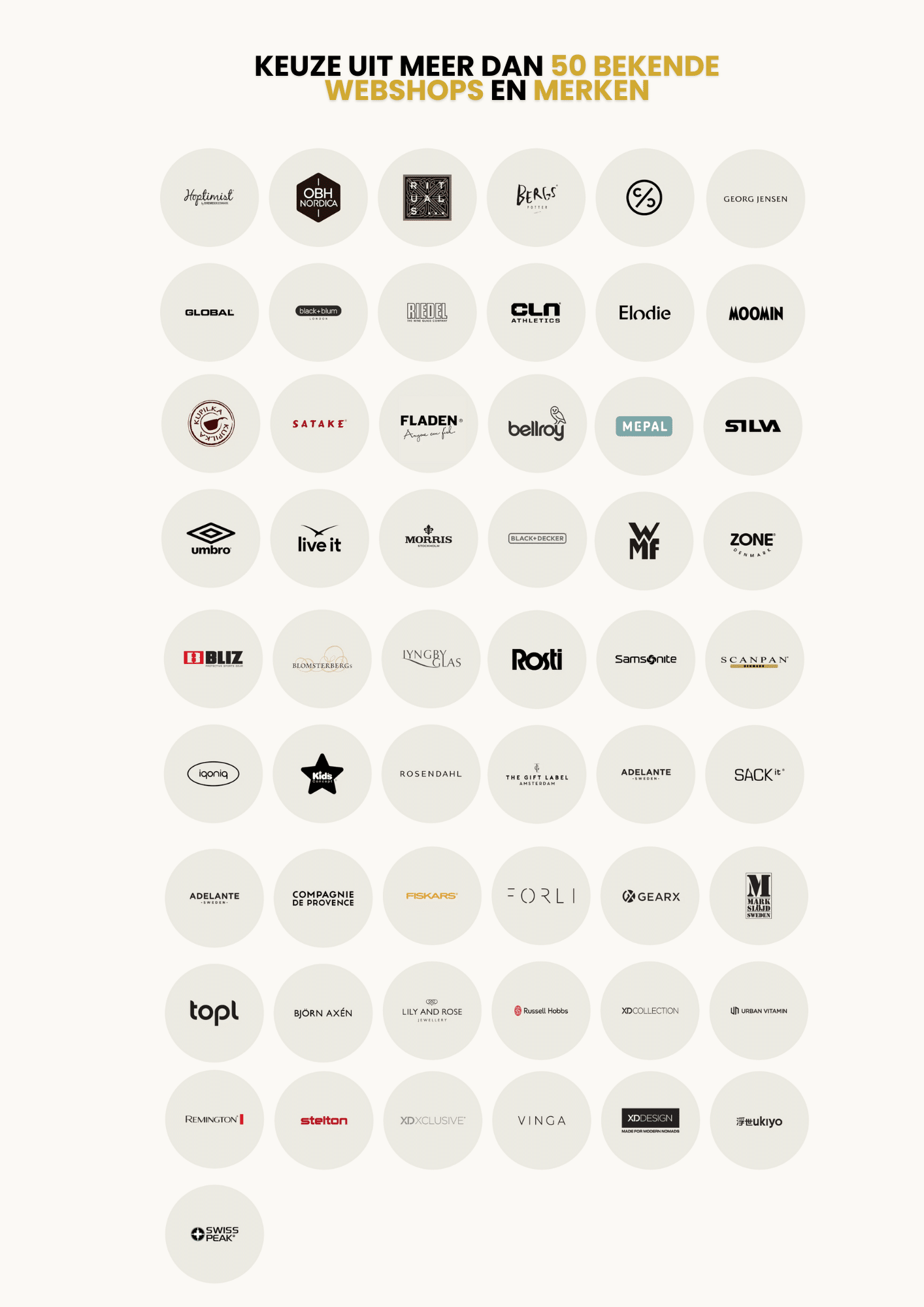 Altijd passend – de bon geeft toegang tot een breed assortiment van topmerken en producten.